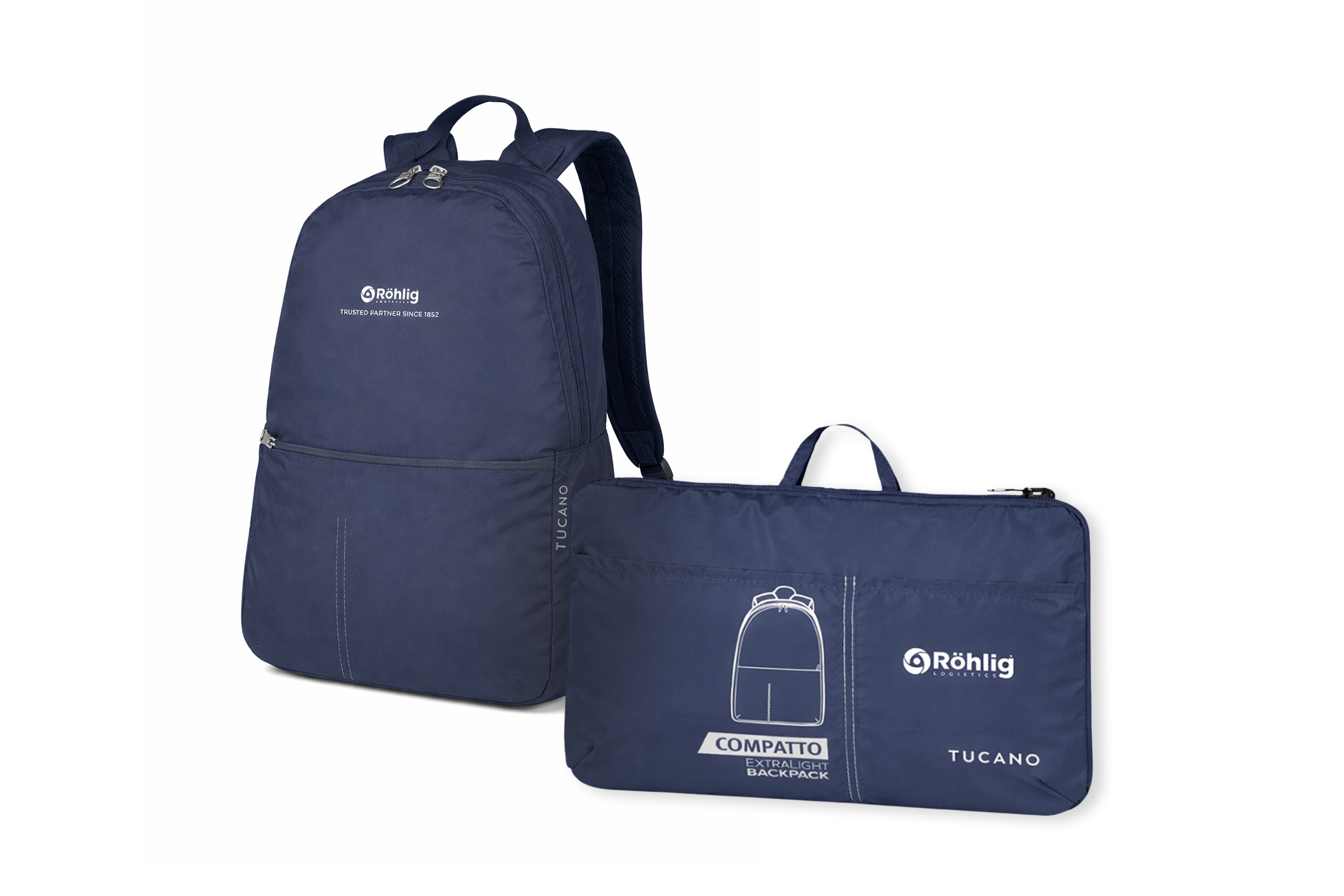 Lightweight folding backpack made of nylon (recycled plastic), easy to store in the integrated pocket when not in use.Equipped with trolley strap, hand strap and 1 Easy Access front pocket.